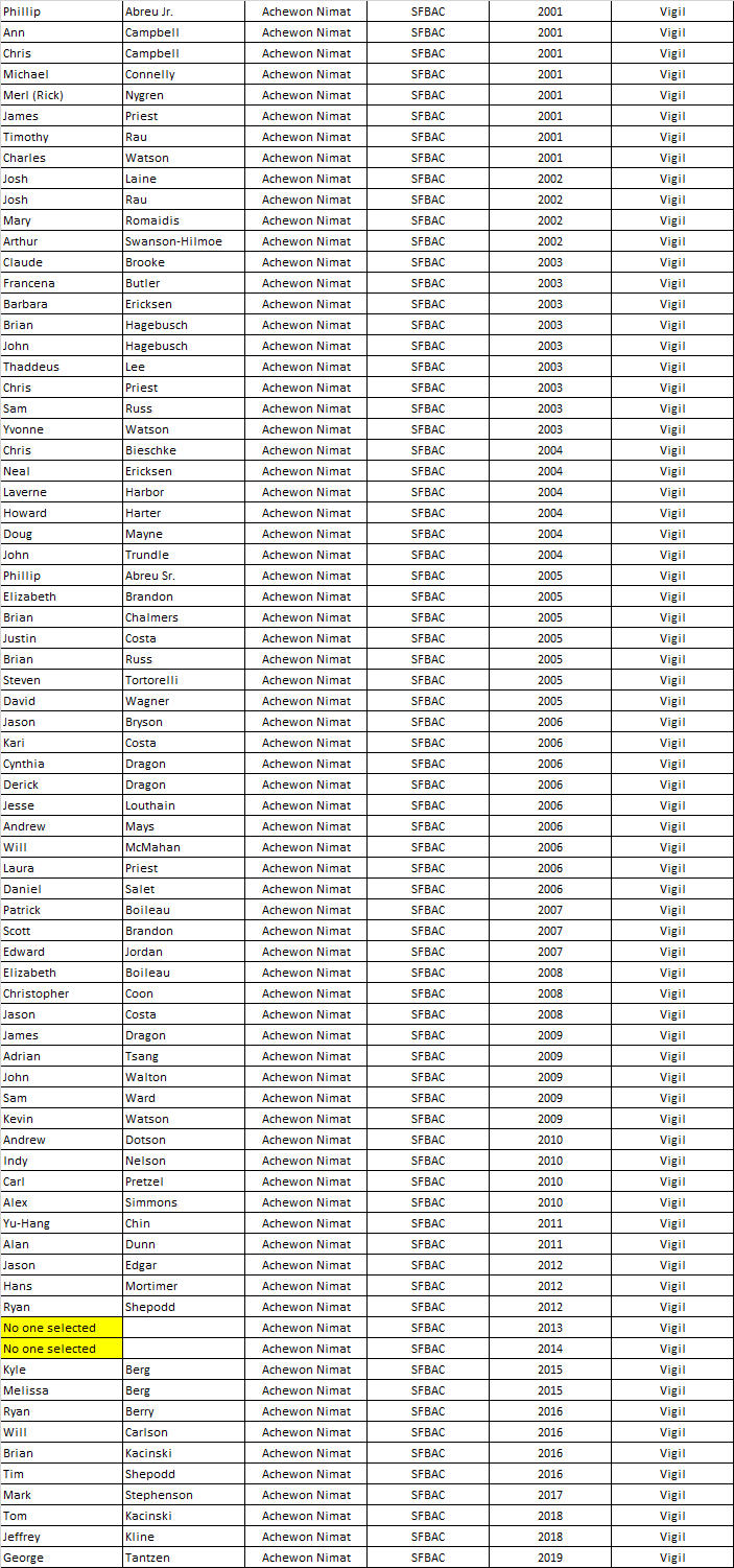 Achewon Nimat Lodge - Vigil Members (1994 - Present):