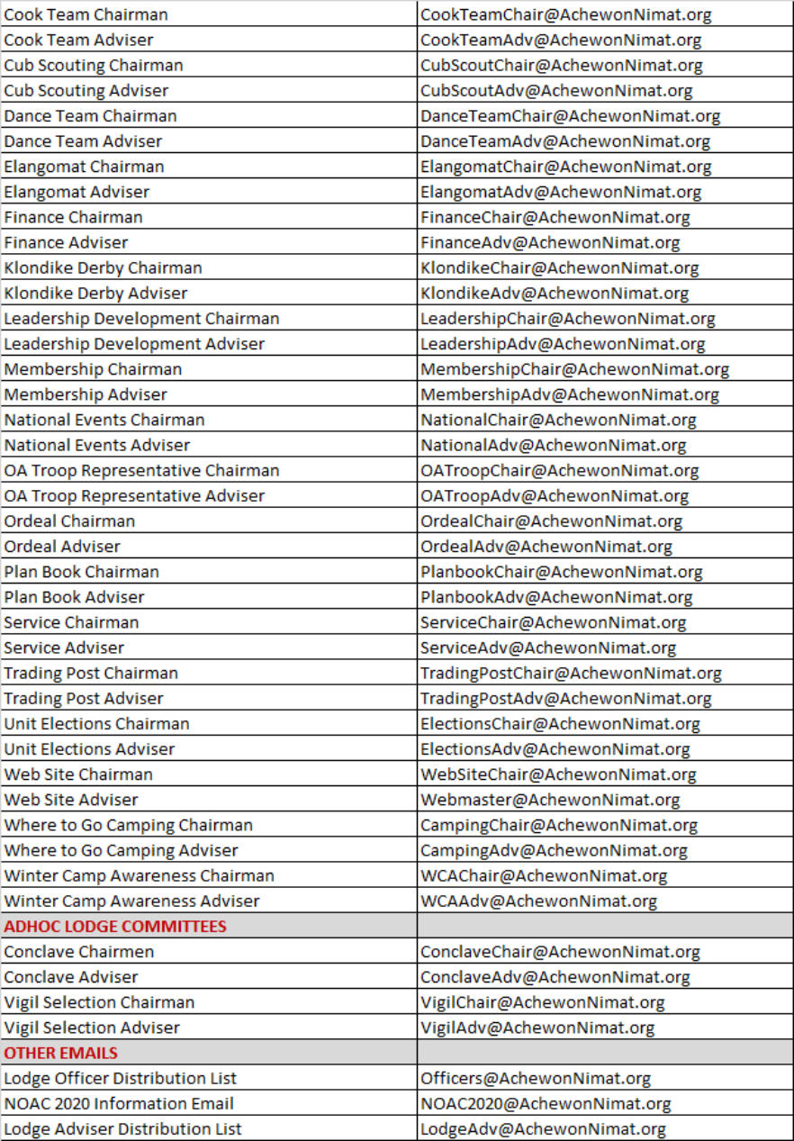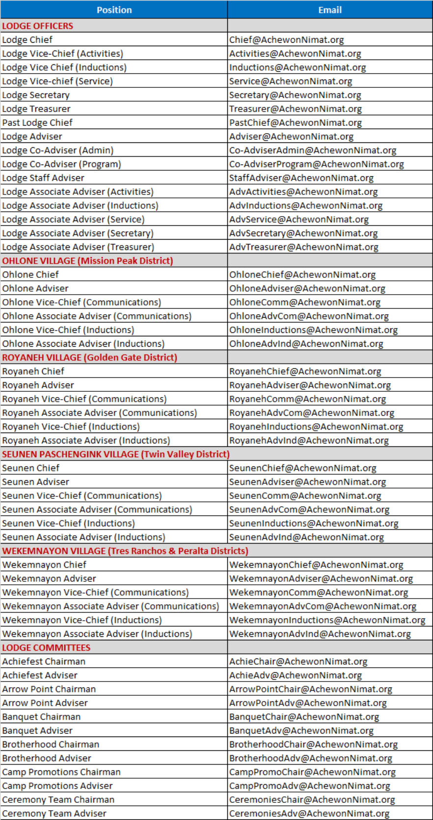 Lodge, Village & Committee Contacts