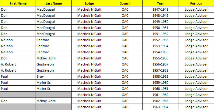 Machek N’Gult Lodge - Advisers (1947-1964):