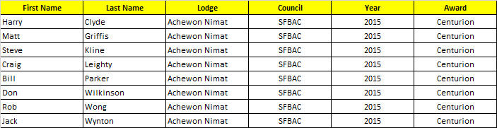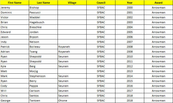 The Arrowmen award is presented by the Lodge to recognize a youth that has shown outstanding service throughout the year.