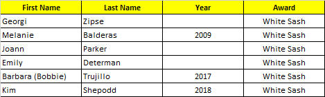White Sash Award: