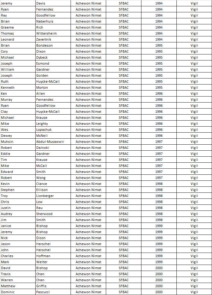 Achewon Nimat Lodge - Vigil Members (1994 - Present):