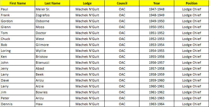 Machek N’Gult Lodge - Chiefs (1947-1964):