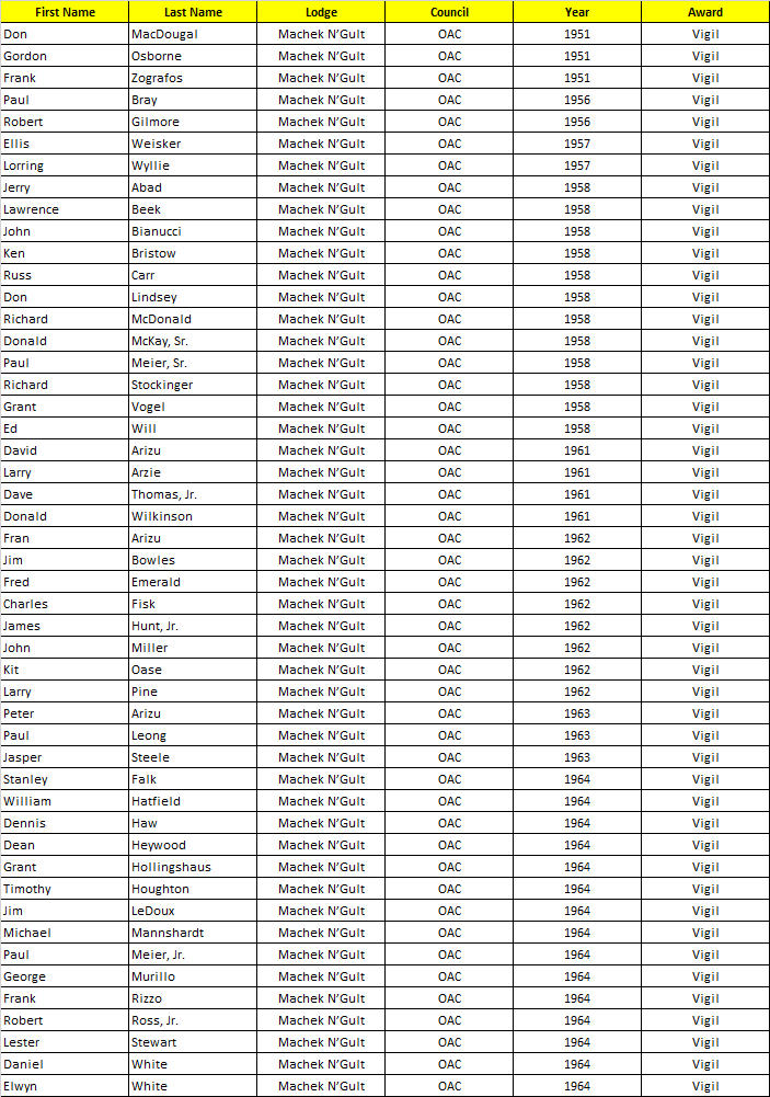 Machek N’Gult Lodge - Vigil Members (1947-1964):